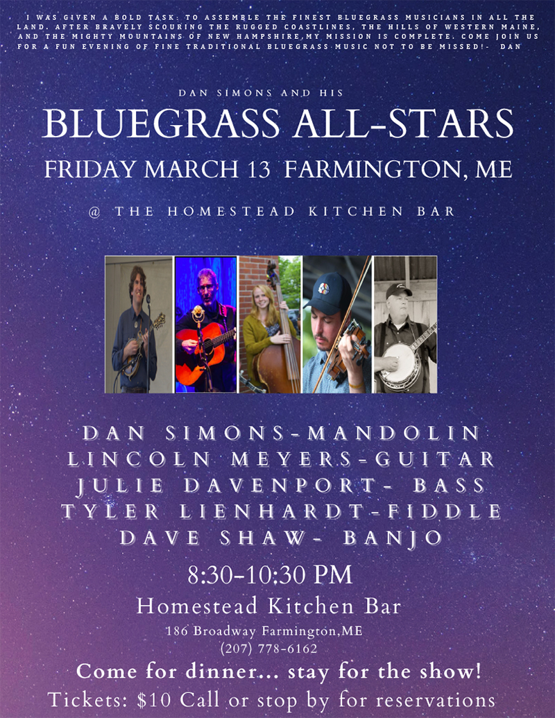 Stop by the Homestead or call 207 778 6162 to buy tickets and make dinner reservations